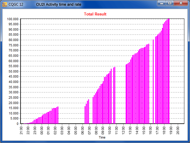 Jeg var aktiv i ca 19 timer ialt. Det gik meget langsomt med at få QSO og nogle gange måtte jeg opgive at få kontakt.