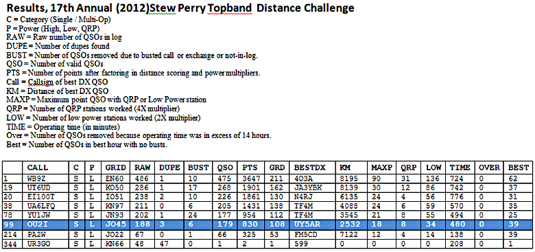 Som så ofte var der en del russere og efterhånden kan jeg kende mange af kaldesignalerne. Når jeg kigger på min statistik kan jeg se at f.eks. RN3F har jeg kørt 23 gange fordelt på 5 bånd. RT3T er kontaktet 21 gange på 6 bånd, F5IN 16 gange på 6 bånd og ligeledes RT9A. Du kan se min statistik oversigt på siden om Statistik for OU2I.