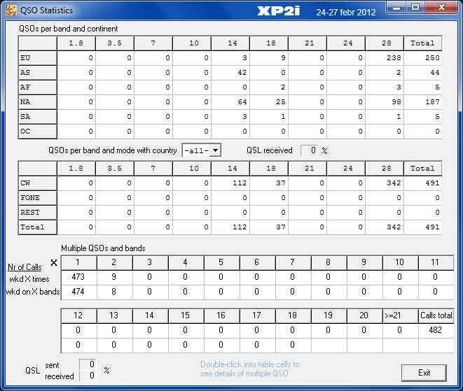 Samlet var jeg aktiv på båndene i 6 timer og 20 minutter, kørte 491 QSO'er med 45 lande.