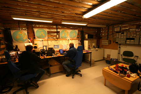 Det var meget spændende at komme ind i klubhuset og som du kan se på billederne er det et rigtigt radioshack med alt hvad man behøver plus lidt til. Selv om der var minus 33 grader celsius udenfor var her dejligt lunt opvarmet af en oliekamin og et sindrigt hjemmebygget ventilationssystem.