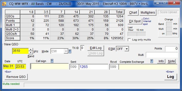 CQ WPX CW Contest   30/31 May 2015         Call used: ZA/OU2I