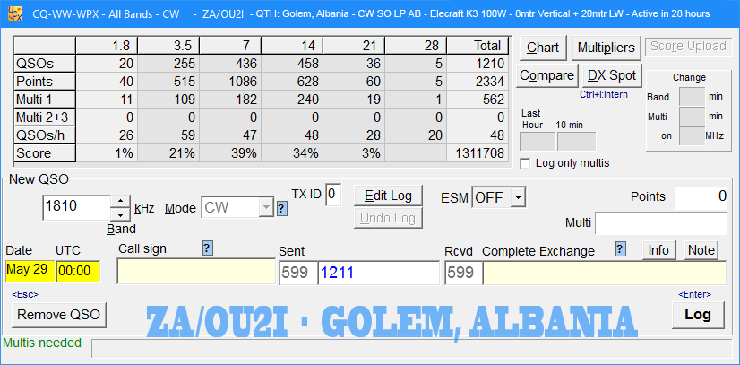 CQ WPX CW Contest   27/28 May 2017         Call used: ZA/OU2I