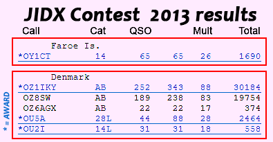 Jeg hørte at OZ7EA, OZ6TL, OU3A og OZ6KS også var aktive. Kan se OZ2PBS, OZ4NA, OZ5RF og OZ9V har indsendt Log.
