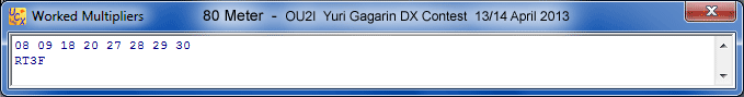 Der var gang i tre contester i denne weekend og jeg deltog i "His Majesty The King of Spain Contest". Jeg sender også log ind til "UN - Kazakhstan DX" og de kan jo så bruge den som check-log :o) Jeg deltog ikke i Baltic Contest på 80 Meter.