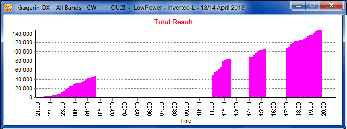 Jeg var aktiv i ca. 2 timer sammenlagt og kørte kun på 20M båndet.