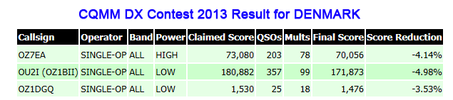Jeg blev nummer 13 i verden (udenfor SA) i kategorien SOABLP med 215 deltagere. http://www.cqmmdx.com/results/results-2013/