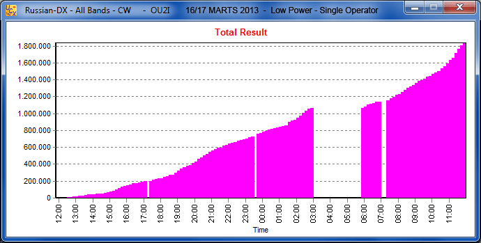 Det blev til 1736 QSO og 1.182.327 point ifølge mit logprograms beregninger.