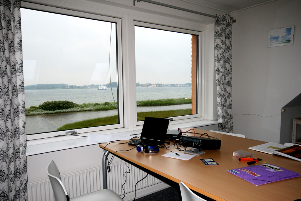 Stationen kunne jeg montere i et fællesrum på 1. salen, og som du kan se på billedet var der en skøn udsigt mod syd-sydvest.
